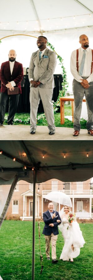 When the downpour started right before their ceremony was supposed to start, these two embraced it whole heartedly and told me they loved the rain anyway. The Barton House staff heroically rushed to move the ceremony under the reception tent. Afterwards C carried his bride through the rain and we used one of my umbrellas to adventure in the rain for photos. Under the cover of the tent, everyone danced and sang the night away proving that unplanned weather doesn’t have to dampen the celebration!